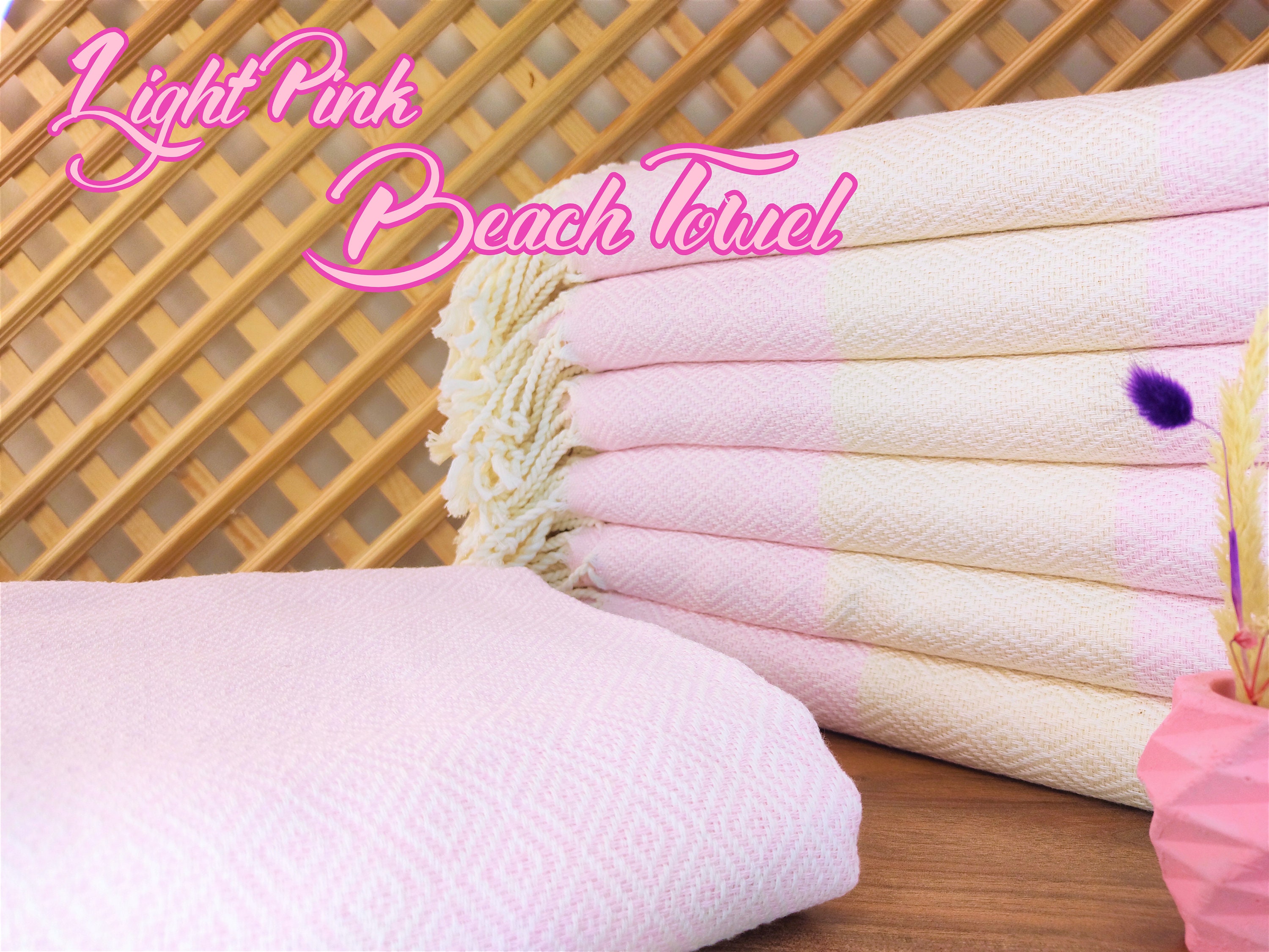 Personalized Turkish Beach Towel: Light Pink Cotton, Bachelorette Gift