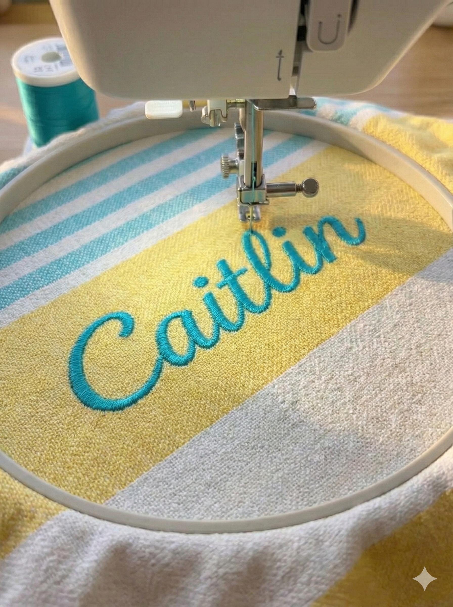 Personalization: Make it unique! We can embroider names or monograms (like "Caitlin" in the photos) with high-quality turquoise thread to match the hem details. Perfect for gifts!